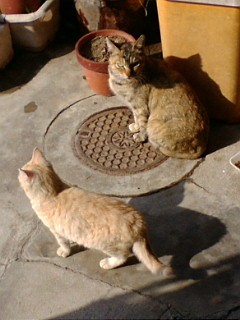 よーく見ると、ちょっと前に生まれて最近うろうろしている子猫とお母さん。