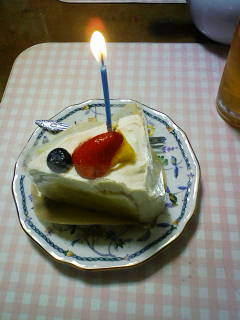 仕事帰りに自分で一本のろうそくを付けてもらったケーキを買って