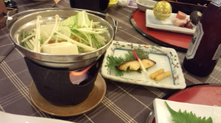 ここの名物のイノブタ鍋に、天ぷらも目の前で揚げて、アツアツをいただきます。