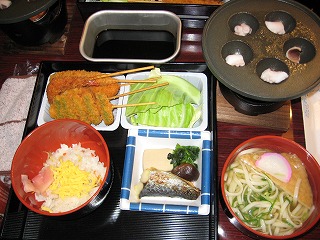 きつねうどんに、マイたこやき、くしかつ、ちらし寿司etc のお昼ごはん。